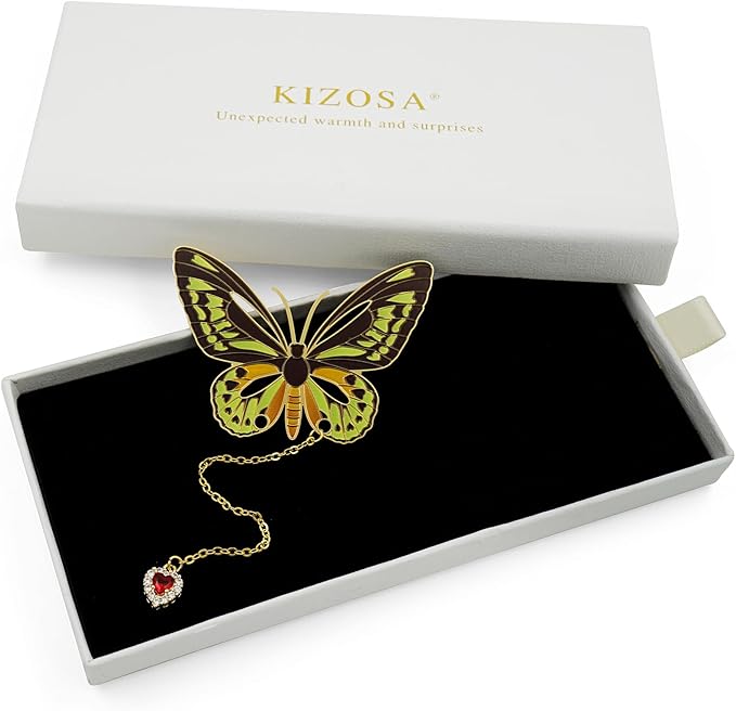 - 【Gift Box Packaging】 Each book marks comes in a beautiful box, butterfly size: 2.6 x 2.19 inches, heart charm size: 0.48 x 0.36 inches, chain length is about 4 inches, gift box size: 3.15 x 6.5 x 0.7 inches. The butterfly book markers is light and delicate, so that readers can read with ease and joy, and think of you every time they read