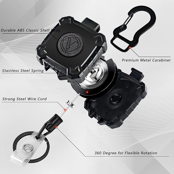 - Powerful Retraction: The badge holder reels feature a robust 31.5-inch steel wire cord that extends smoothly for effortless access. Each reel is equipped with a keyring and an ID holder strap, keeping all your essentials in one easily accessible place.