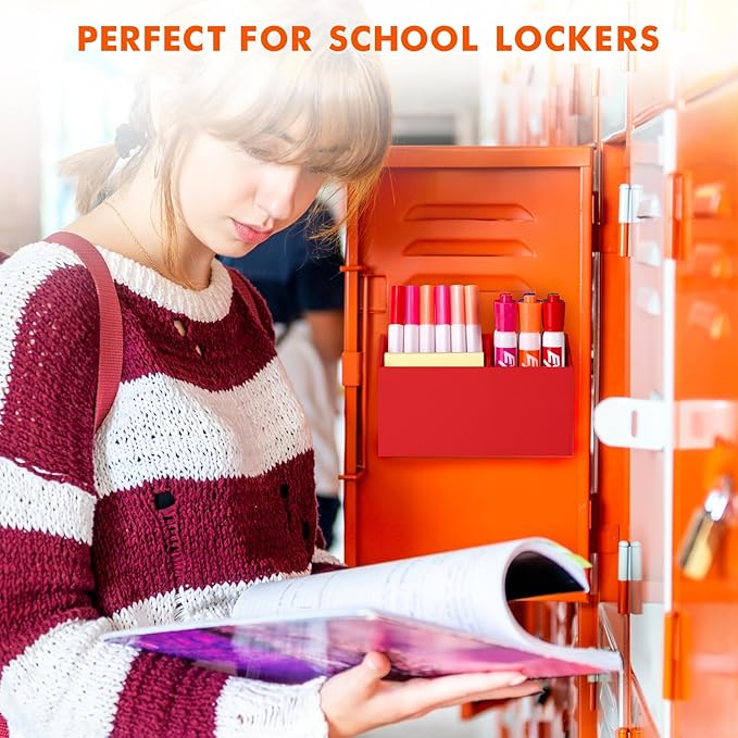 BEYGORM Magnetic Dry Erase Marker Holder for Whiteboard,Non-slip Acrylic Magnet Pen Holder for Fridge Refrigerator,Locker Organizer for Work,Locker Accessories,Pencil Cup for Desk(Red)