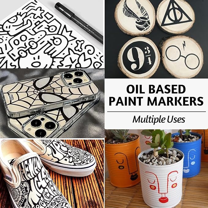 - VERSATILE, EASY TO USE AND SAFE: Our black paint markers use high quality Italian ink to ensure long lasting reliability. Ideal for a variety of decorative projects such as ornaments, crates and other crafts, perfect for children's activities. It makes a great gift for artists, kids.