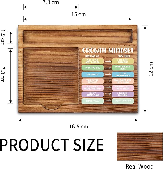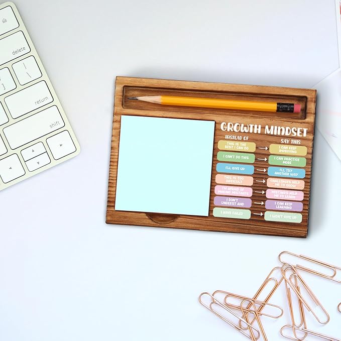 vizuzi Growth Mindset Sticky Note Holder, Counsellor Office Decor, Therapy Office Decor, Positive Self-Talk, Growth VS Fixed Mindset, Therapist Self-Stick Note Pad Holders ZSS39