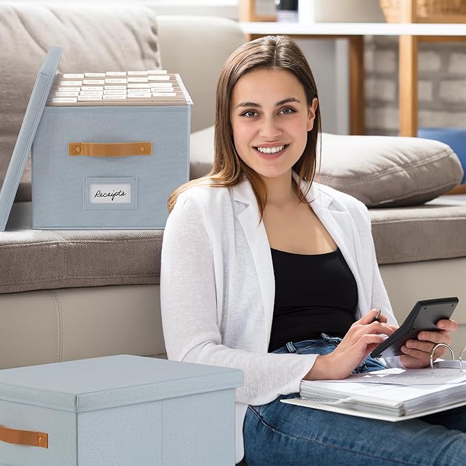 - Decorative: The ZICOTO file folder box in blue linen provides a stylish way to organize all your papers and supplies; Functional features & a beautiful design create THE ultimate filing organizer