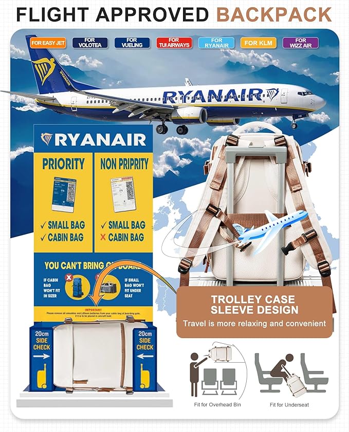 - Flight Approved Travel Backpack: SEAFEW Backpack Size (L*W*H) 25*20*40cm(9.8*7.8*15.7 inch). Carry on Backpack suitable for air travel, easy to place under luggage racks or seats.Integrated trolley sleeve slides over rolling luggage handle making airport travel a breeze. Your ideal overnight weekend boarding bag for business or personal travel.