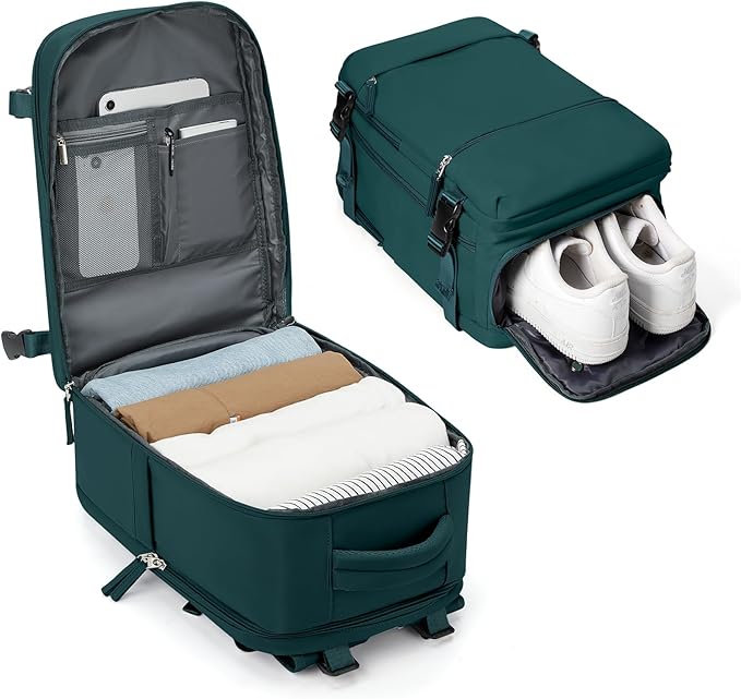 Small Carry on Backpack, Mini Travel Backpack Airplane Approved Weekender Bag for Women Men, Water Resistant Lightweight Daypack with Shoe Compartment, Laptop Backpack for Business, Peacock Blue
