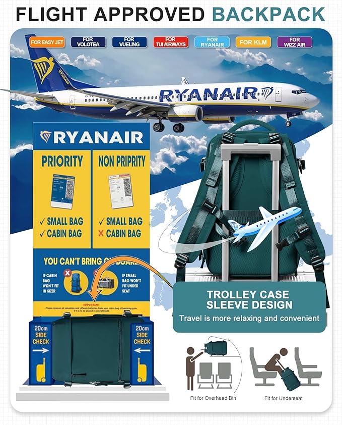 - Flight Approved Travel Backpack: SEAFEW Backpack Size (L*W*H) 25*20*40cm(9.8*7.8*15.7 inch). Carry on Backpack suitable for air travel, easy to place under luggage racks or seats.Integrated trolley sleeve slides over rolling luggage handle making airport travel a breeze. Your ideal overnight weekend boarding bag for business or personal travel.