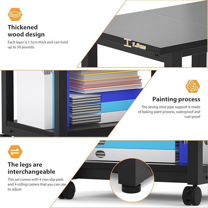 - 【Locking Caster Wheels】: Each smooth-rolling caster wheel is lockable and can swivel 360° for easy mobility. The printer cart wheels are optional if you want to use the stand on a desktop or shelf instead of on the floor.