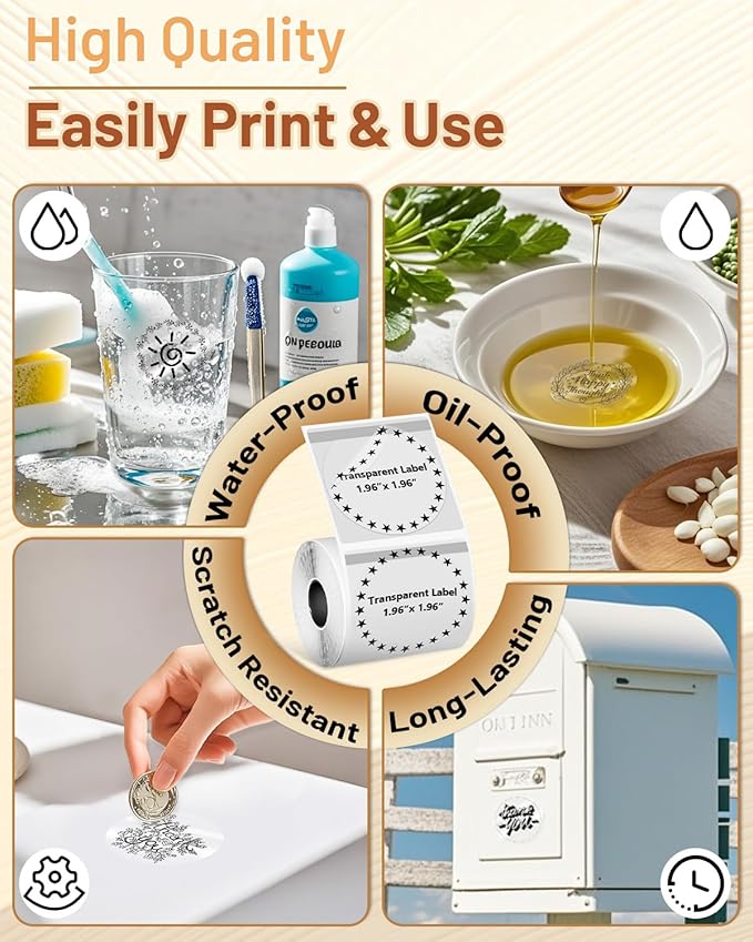 - [Features] Our labels resist smearing thanks to water-based ink, and an upgraded thermal coating ensures water and oil resistance. This eliminates concerns regarding the clarity and legibility of the printed content