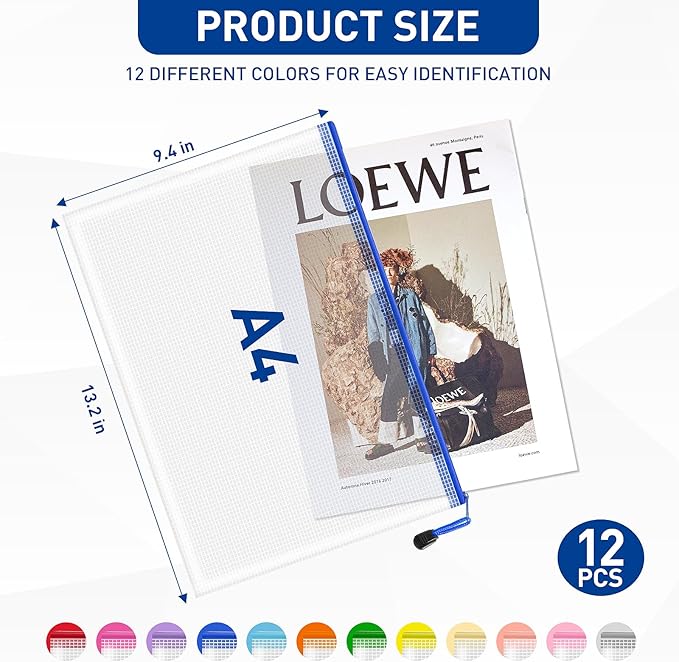 - Wide Applications: This colorful zipper pouch can holds letter size/A4 size documents. The A4 mesh zipper pouch bags can also be used for organizing bags, pencil pouch, document pouches, teacher storage bag, travel pouch, puzzle bag and toy bags for storage. These zipper pouches for organizing are great for office and school storage and organization.