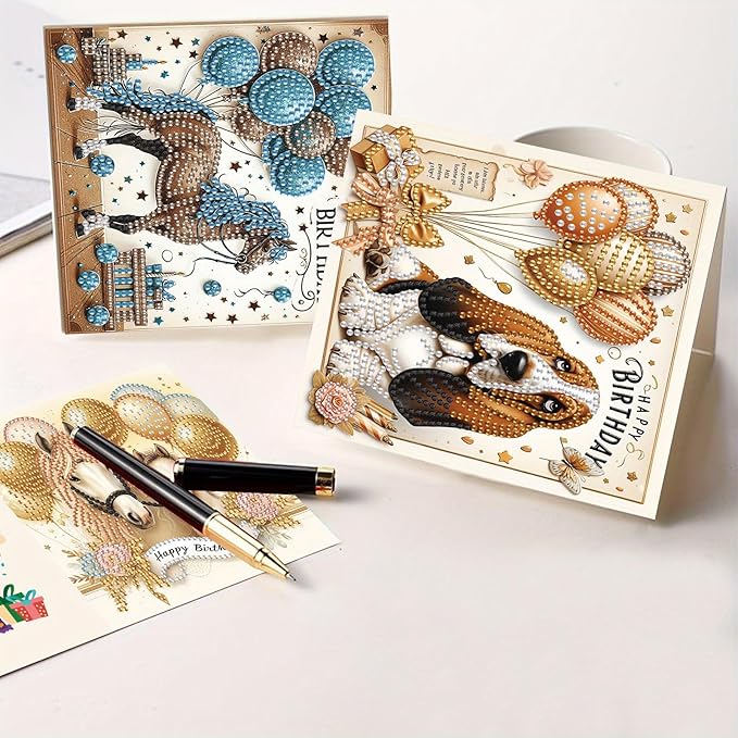 Tontut 6 Pieces Diamond Art Painted Greeting Cards, Horse Puppy Balloon 5D DIY Special Shape Diamond Card Creative Gifts, Christmas Thanksgiving Greeting Card Congratulation