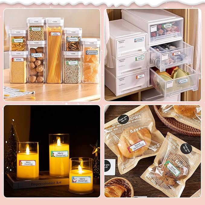- Multi-Purpose Labels: This label paper can be used to create your own customized stickers for a wide variety of applications; It can be used for storage classification labels, food and cosmetics date labels, product price display labels, school and office file classification labels, and much more; The labels can be securely adhered to paper, bubble bags, plastic, glass, metal, and other surfaces