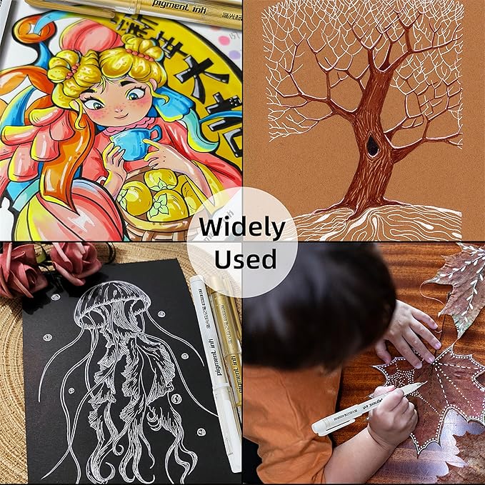 - Versatile: Mix well with other media, you can use it for the high-light part of the works, like white light,stars. Metallic, bold colors make a statement on light and dark paper, ideal for journaling and taking notes, illustration, card making,photos, black envelopes and other projects