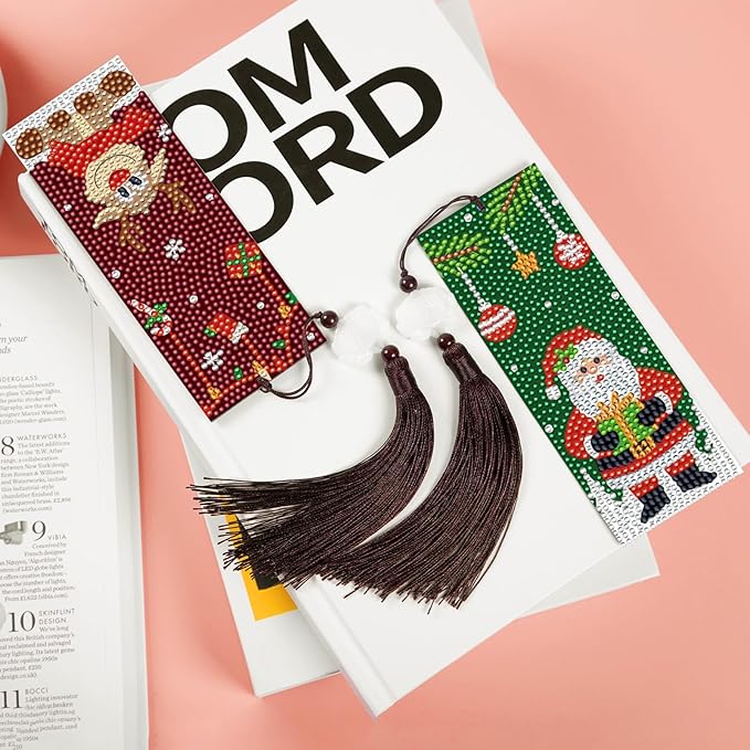 Anseal Christmas Diamond Painting Bookmarks for Book Lovers, Rhinestone PU Leather Diamond Art Bookmark for Women Girls, Tassel Beaded Book Mark for Graduation Birthday Christmas Reading Present