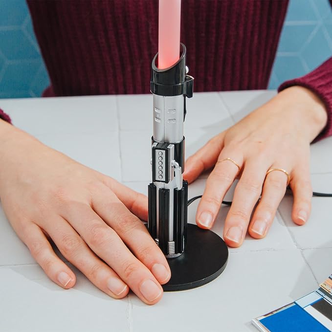 - SHOW YOUR ALLEGIANCE: Embrace the Dark Side with this striking mood light, modeled after Darth Vader's lightsaber as first seen in Star Wars: A New Hope. Channels the ominous glow of the Sith, illuminating a vibrant red when activated.
