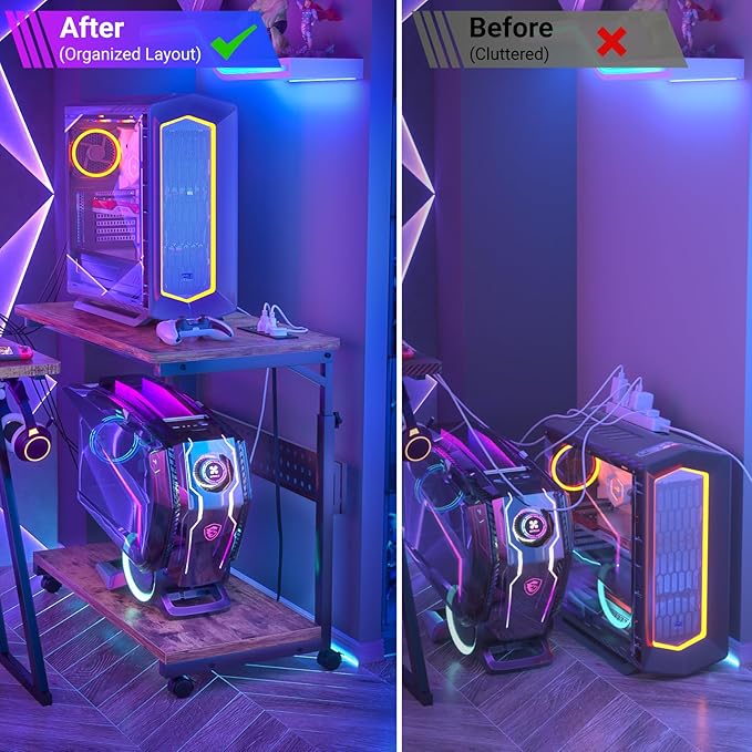 - CPU Holder with Outlets - Built-in useful electrical power outlets and USB ports (3 AC outlets + 2 USB charging ports) for your devices to plug in. It is handy and easier to plug in your computer tower, phone, iPad, or PC monitor. So you can keep cables better controlled.