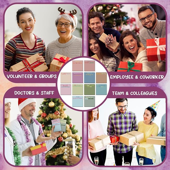 - Quality Material: appreciation sticky notes are designed with self adhesive, strong adhesion, and can be easily pasted on many smooth and clean surfaces, such as books, doors and windows, refrigerators, cabinets, desks, drawing boards, etc.; Moreover, they will not leave behind after removal any sticky residue, odorless and smooth, easy to peel and stick, good adhesion, not easy to remove, bring convenience to your daily work and study, or Christmas sticky notes gift