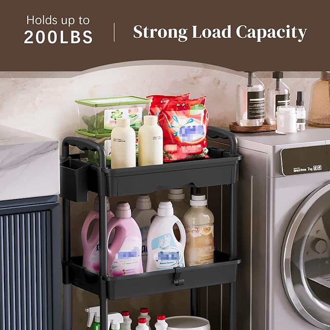 - Versatile Rolling Cart: This storage cart on wheels is your ultimate multi-functional solution for various purposes, such as a baby stroller, makeup trolley, diaper caddy, bedside organizer, snack cart, and more. Enjoy endless possibilities in the bathroom, kitchen, bedroom, laundry room, study, and beyond.