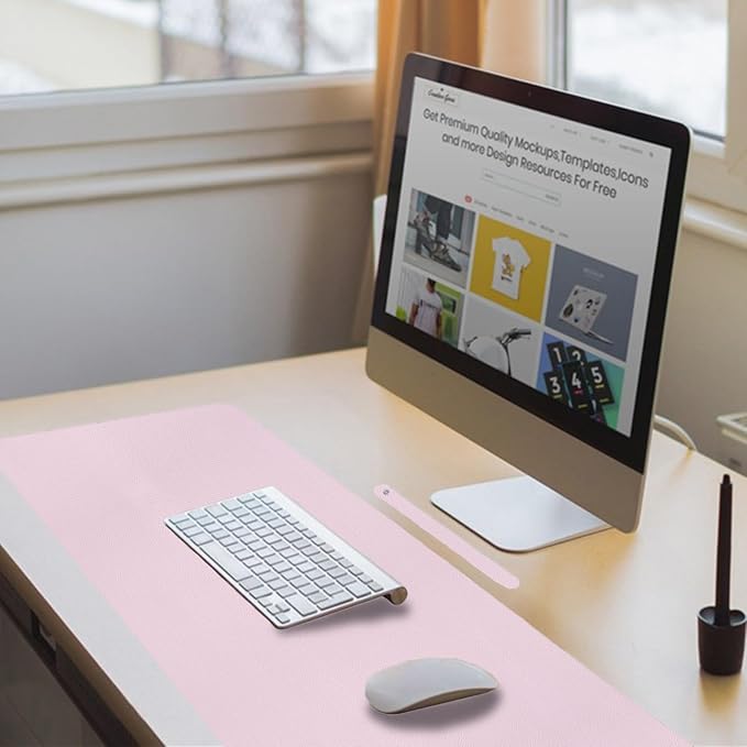 Boutilon Leather Mouse Pad,Extended Desk Pad for Keyboard and Mouse Non-Slip Study Desk Writing Pad Desktop Protector for Home Office Accessories,24"x 14"(S-Light Pink)