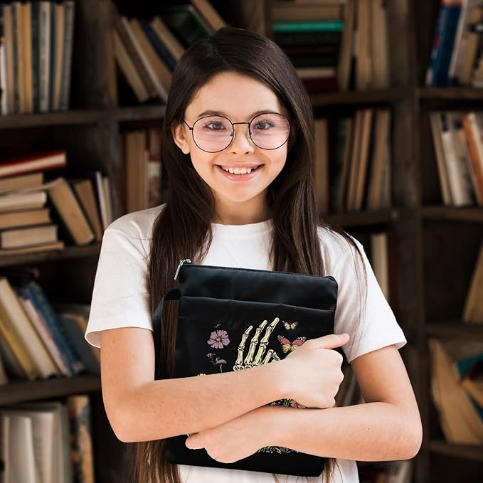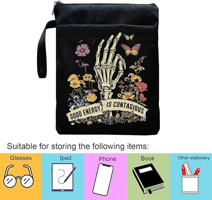 Book Sleeve, Book Sleeve with Zipper, Book Sleeve for Book Lovers, The Reader Tarot Card Book Sleeves, Book Pouch Kindle Protector, Gifts for Women Teacher Librarian Bookworm Bookish (Black-D, Large)