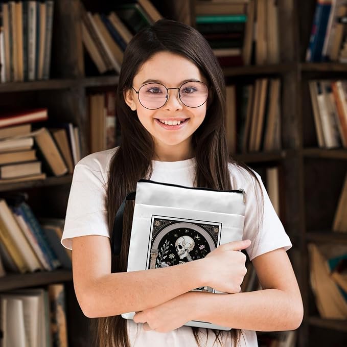 Book Sleeve, Book Sleeve with Zipper, Book Sleeve for Book Lovers, The Reader Tarot Card Book Sleeves, Book Pouch Kindle Protector, Gifts for Women Teacher Librarian Bookworm Bookish (White-C, Large)