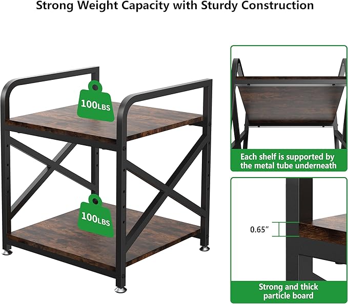 - Large Storage Space: With spacious 26.2" x 26.2" square shelves that can hold up to 100 lb on each tier, the two-tier storage design provides ample space for printers, scanners, fax machines as well as documents, books, printer paper, ink cartridges and other office supplies. It's definitely more than just a 3D printer cart. It's also an coffee table, sofa end table, plant stand rack, living room storage rack, nightstand, microwave stand, fish tank stand or a mini fridge stand