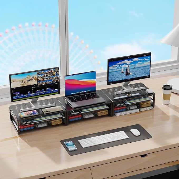 - 【Powerful and stable】: The monitor riser is designed with ventilated heavy steel plates and steel legs, which has a very large load-bearing capacity and effectively prevents equipment from overheating. Non-slip rubber pads provide stability during work.