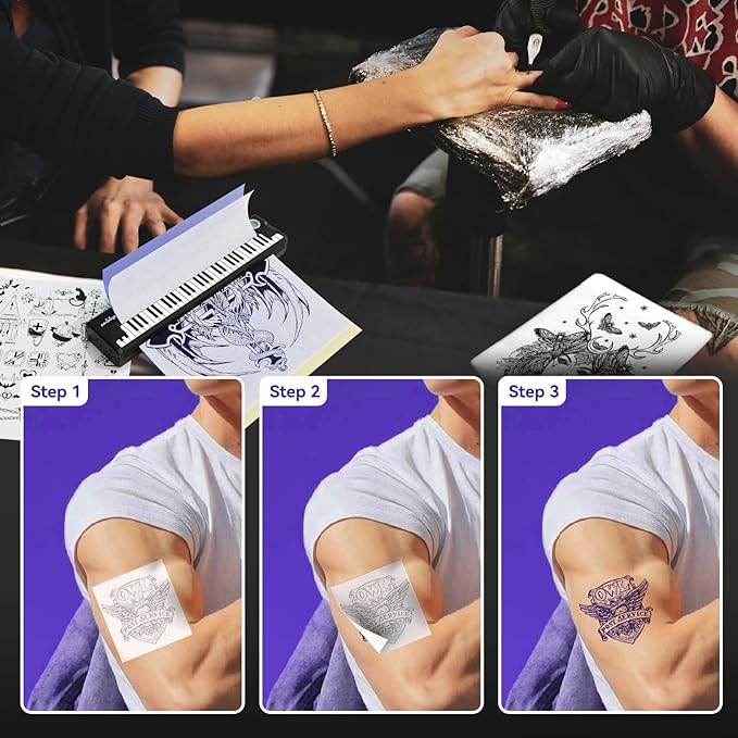- Ideal for All Tattoo Lovers: Whether you're an experienced pro or a beginner taking the first steps, the P90-Pino tattoo printer revolutionizes your tattoo journey. In just a matter of seconds, it can generate clear and precise stencil lines, enabling you to effortlessly create breathtaking tattoo masterpieces.