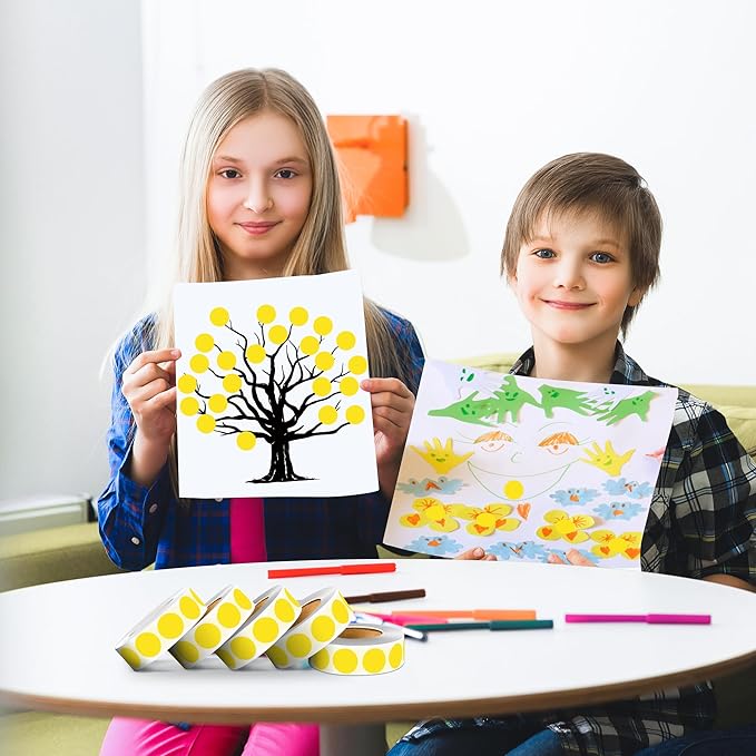 - The package includes 4 rolls total 4000PCS 0.75 Inch diameter yellow color coding dots round stickers, 1000pcs labels per roll in a dispenser box. They are color coding stickers not for printing.