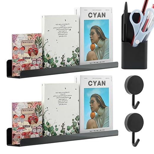 - 【WIDE APPLICATION】Can be used in whiteboard classrooms to store various teaching tools. The 17-inch long magnetic bookshelf can store and display various books, drawings, photos, artworks, paintings, toys, etc., and the heightened front edge prevents items from falling.