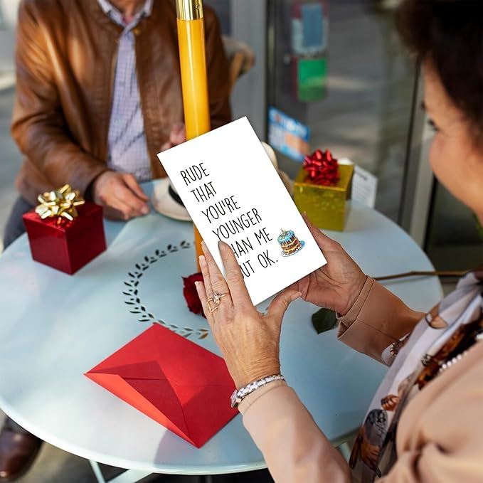 Rude But Ok Birthday Card for Friend, Funny Cousin Birthday Card for Little Brother Sister, Lovely Younger than Me Birthday Card