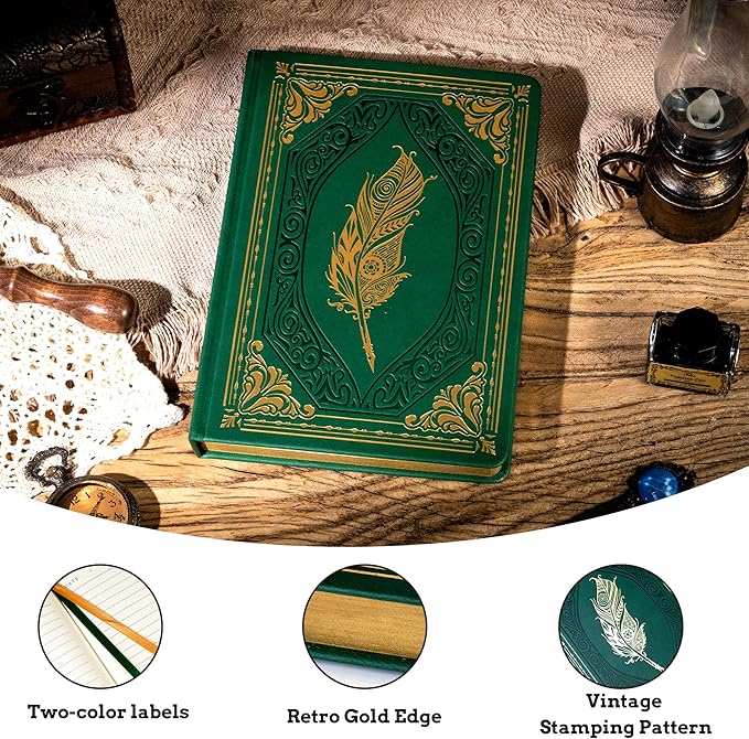 - 320 PAGES GOLD EDGE PAPER - Vintage journal for women with size of 5.7x8.3 can easily fit into your bag to record what you feel and learn at any time. 160 sheets (320 pages) of lined ruled paper with 25 lines per sheet meet the needs of long-term writing.