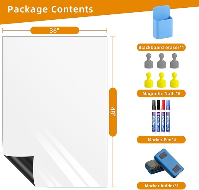 Dry Erase Adhesive Whiteboard Paper, 36" x 47" Stick on Magnetic Contact White Board Sticker on Wall for School, Office, Kitchen Fridge, Kids Drawing