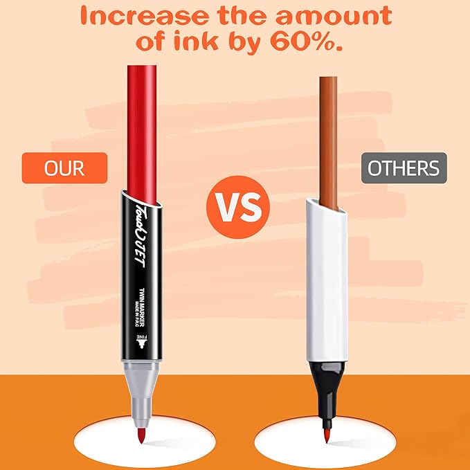 - 【DISTINCTIVE DOUBLE HEAD CONFIGURATIONS】: The square barrel design of the markers pen ensures a stable grip and no slipping during usage. It features a dual nibs design, consisting of a thick chisel and a fine tip, providing versatility. The fine tip alcohol markers are ideal for detailed marking in calligraphy, while the wide chisel tip is suitable for large area application. With two distinct nibs and a matching design, seamless color blending is achievable, enhancing the coloring efficiency.