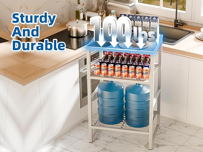 3-Tier Heavy-Duty Printer Stand – Multi-Functional Office Organizer with Wood Top, Perfect for Desk Underneath Storage,White with White Board