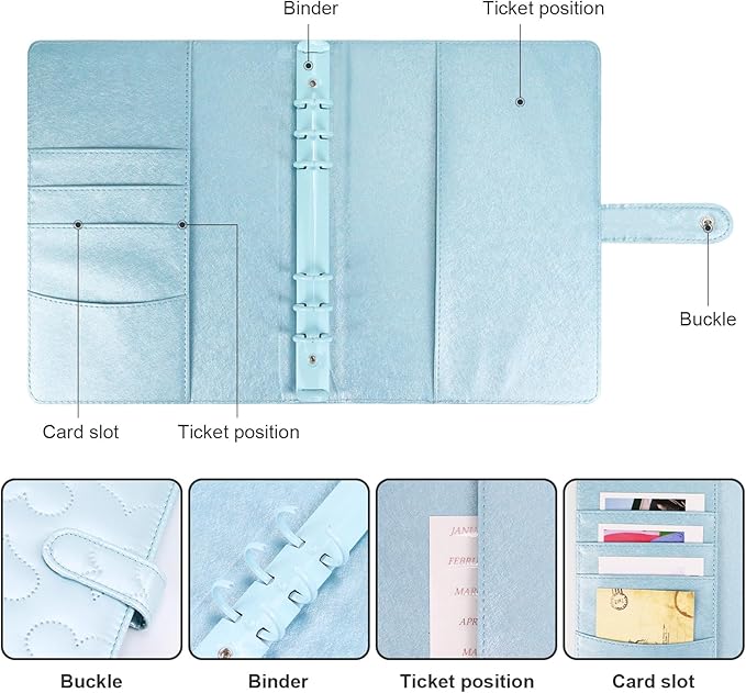 - Multifunctional: Premium PU leather A5 6 ring binder cover can hold all standard A5 6 holes binder pockets, cash envelopes, refill paper, insert inner pages.