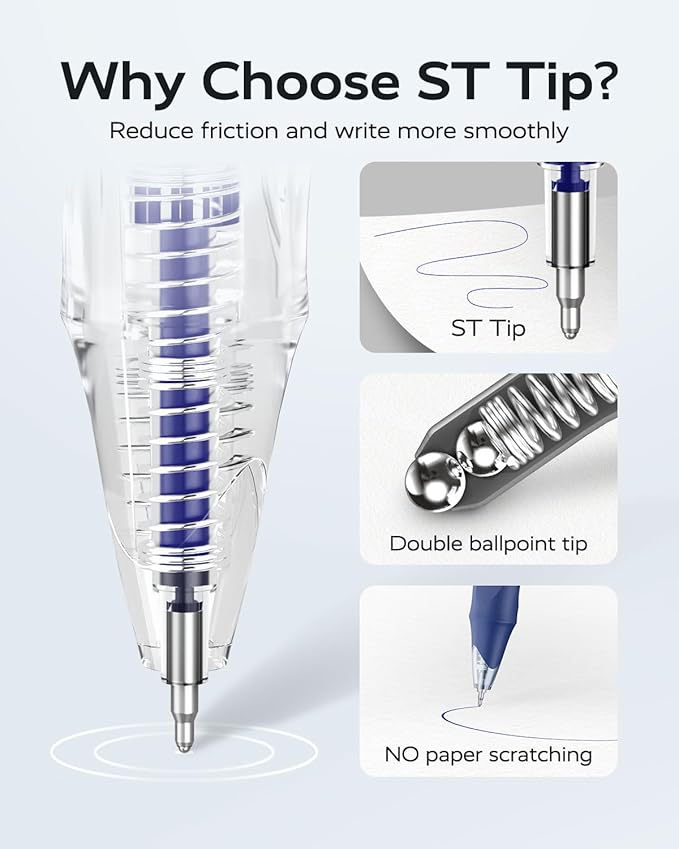 - ST Tip: The double ballpoint tip design reduces friction, the ink pen flows smoothly and glides effortlessly without scratching the paper, offering a seamless and enjoyable writing experience.