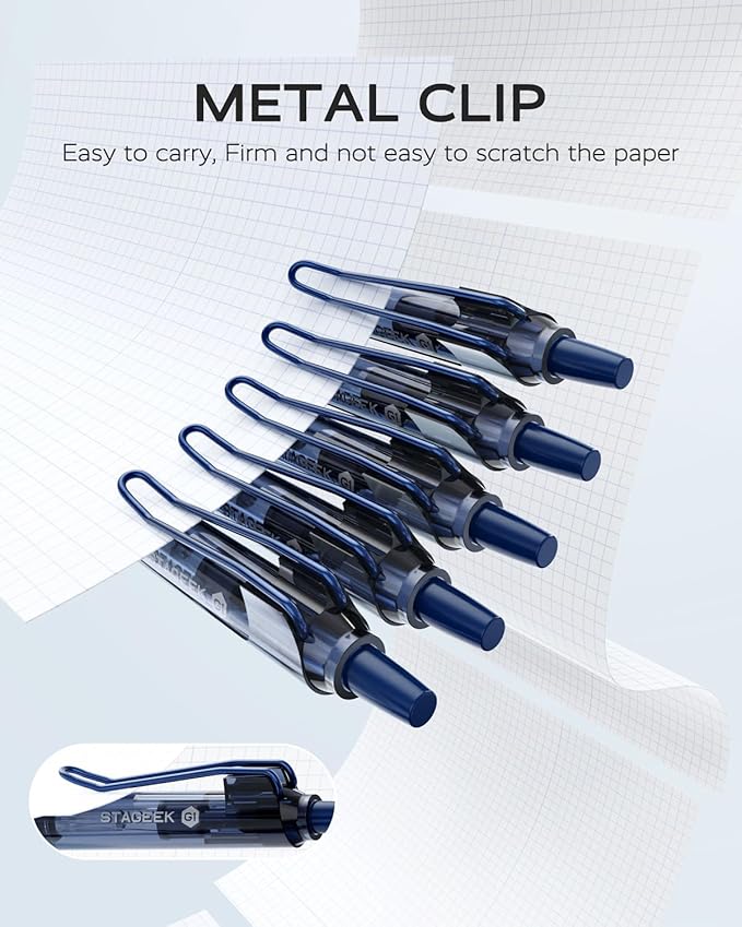 - Metal Clip: The 0.5 ink pen flexible metal clip is stronger, more durable, and grips tighter, making it easy to securely attach to notebooks or pockets. It’s designed for convenient carry, so you’ll never lose it.