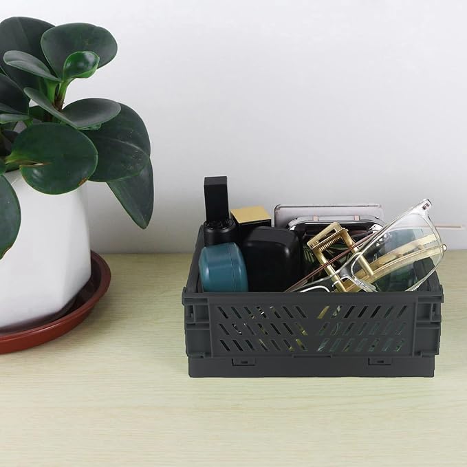 Tixill 2-Pack Mini Foldable Plastic Storage Box Mini Plastic Baskets for Organizing and Storage for Home Kitchen Bedroom Bathroom Office. (Black, 5.9x3.8x2.2)