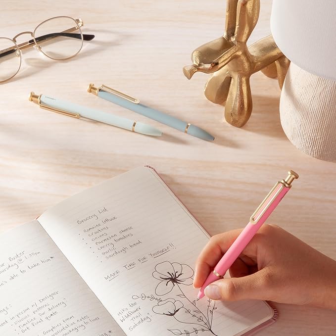 U Brands Monterey Ballpoint Pens, 6 Count, Bright Pastels, Soft Touch, Gold Details, Bold (1.0 mm) Point, Black Ink