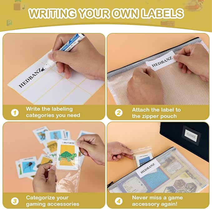 - Enjoy Double DIY Fun:This board game organizers storage offers customizable storage space.Stickers and double-sided adhesive allows you to enjoy DIY, you can write stickers to paste on the bag, or cut the corner of the colorful box and attach it with adhesive,store them according to your preference to help you find the game you need quickly