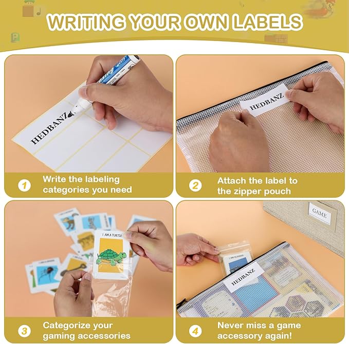 - Enjoy Double DIY Fun:This board game organizers storage offers customizable storage space.Stickers and double-sided adhesive allows you to enjoy DIY, you can write stickers to paste on the bag, or cut the corner of the colorful box and attach it with adhesive,store them according to your preference to help you find the game you need quickly