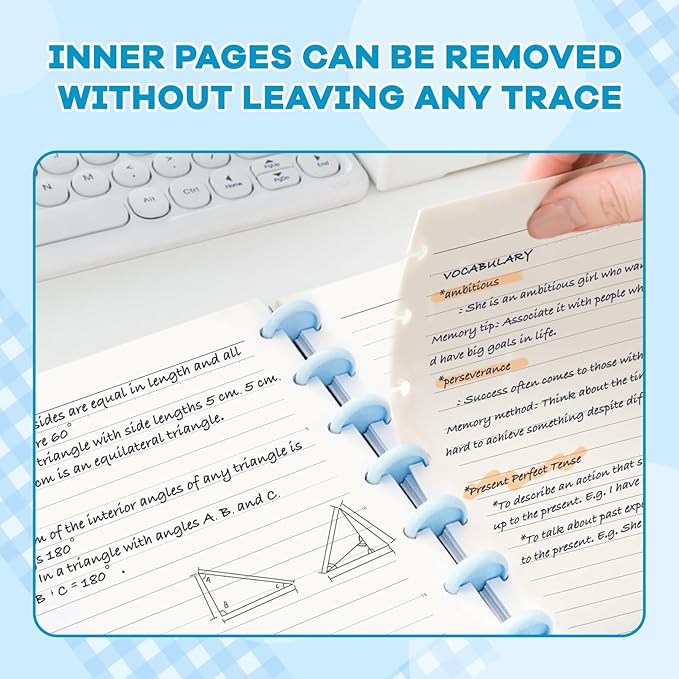 - 【Replaceable Inner Pages】Our disc notebook has a flexible inner core replacement function. Compared with ordinary spiral journals, the disc saves space, does not affect the feel of use, and is easy to turn pages. Pages can be easily added, removed and rearranged to meet your different needs, saving costs and reducing waste, and providing unlimited DIY possibilities.