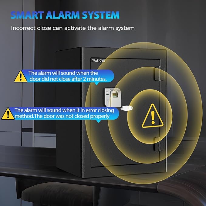 - High-Precision Fingerprint Safe: WASJOYE fingerprint safe uses high-tech semiconductor sensors, which can perform fingerprint authentication with higher accuracy than ordinary optical fingerprint sensors (error recognition rate ≤ 0.001%)