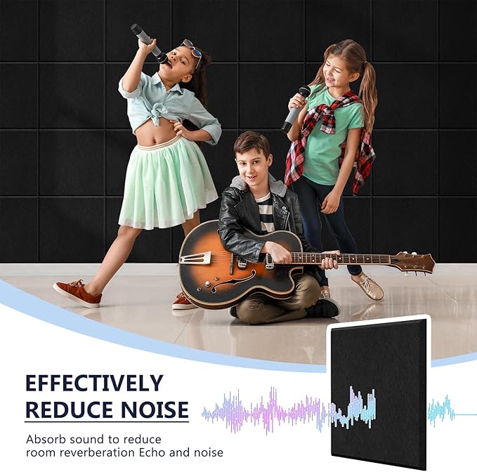 4 Pack Cork Board Tiles 12x12 Inches, 1/2" Thick Felt Cork Squares with 30 Push Pins, Bulletin Board Pin Board, Adhesive Cork Board for for Wall for Home, Office, and Kitchen (Black)