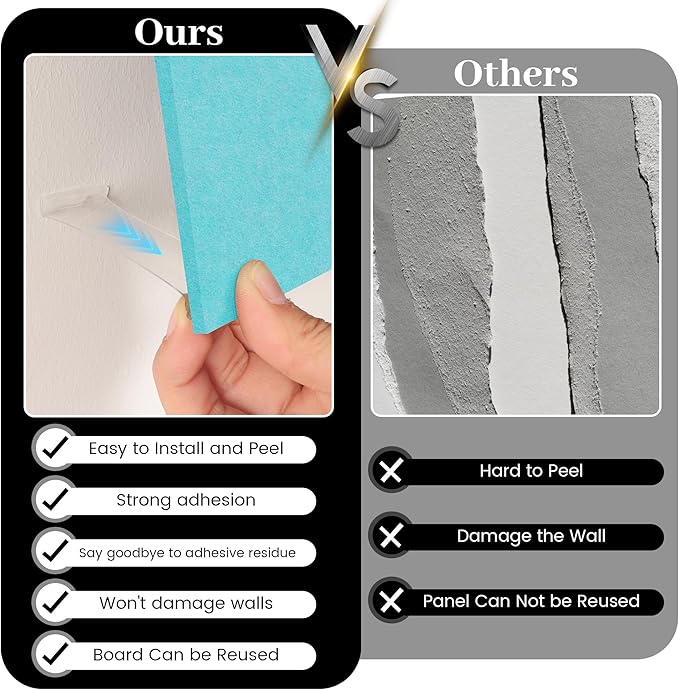 - Strong viscosity and Safe to Remove -No nails are required to install, and the included adhesive tapes are removable and safe for your walls.quick and easy mounting in any space,Unique glue can very good adsorption felt cork board and metope, need not worry colloid and felt wall tiles or metope stripping, no to the trouble that falls off, they are safe to be removed without leaving any adhesive residue or damaging your wall paint.Please mount it on smooth areas such as glass, tiles and doors, not on uneven areas such as limestone walls.Make sure to clean surface area of wall before use