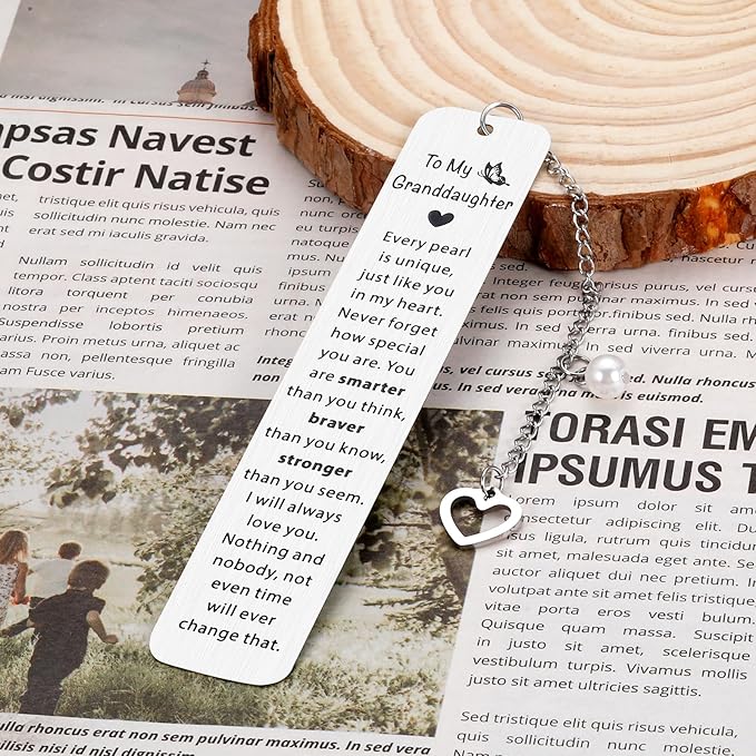 - Stocking stuffers for granddaughter: this bookmark, with a heart and pearl pendant, engraved with a heartwarming words "to my granddaughter every pearl is unique, just like you in my heart...". Great stocking stuffers for teen girls, christmas stocking stuffers for granddaughter, christmas gifts for teen girls, christmas gifts for granddaughter, Stocking stuffers for kids, christmas gifts, christmas gifts for teenage girls. She will like this gift, especially when she receives it on christmas!