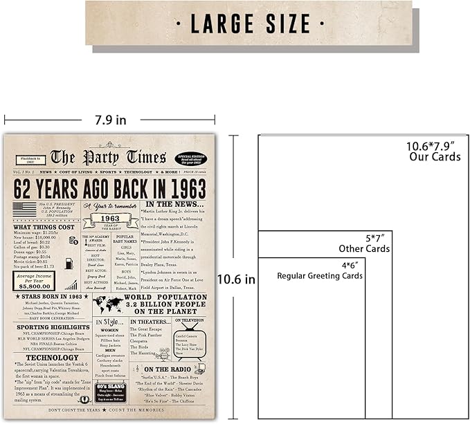 - This large 62nd birthday card features a vintage newspaper design, showcasing important events, movies and sports events from 62 years ago.