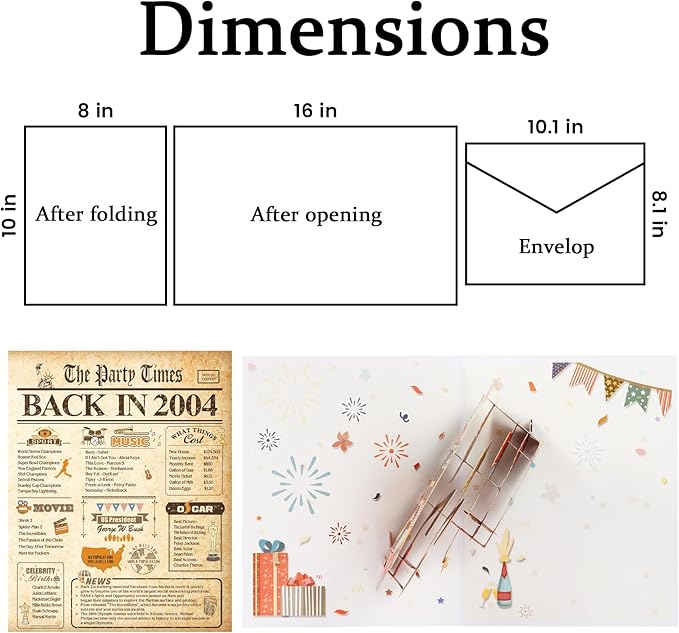 21st Birthday Card for Girls Boys, 3D Pop Up 21st Birthday Gifts Cards, Happy 21 Birthdays Decorations for 21 Year Old Son Daughter, Funny Back In 2004, Classy Vintage