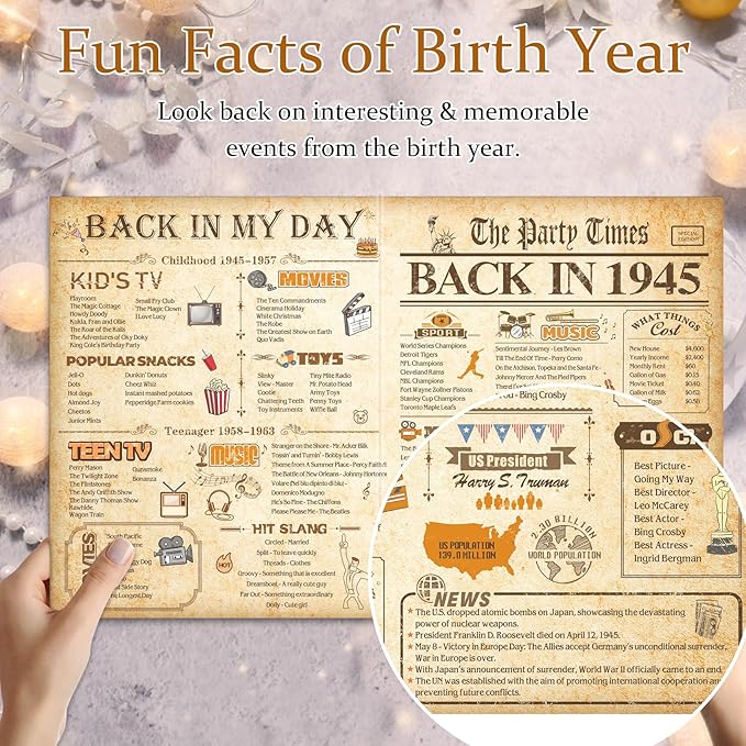 80th Birthday Card for Men Women, Funny 3D Pop Up 80th Birthday Gifts for Grandma Mom Dad, Back In 1945 Happy 80 Year Old Birthday Decorations Cards for Her Him, Classy Vintage