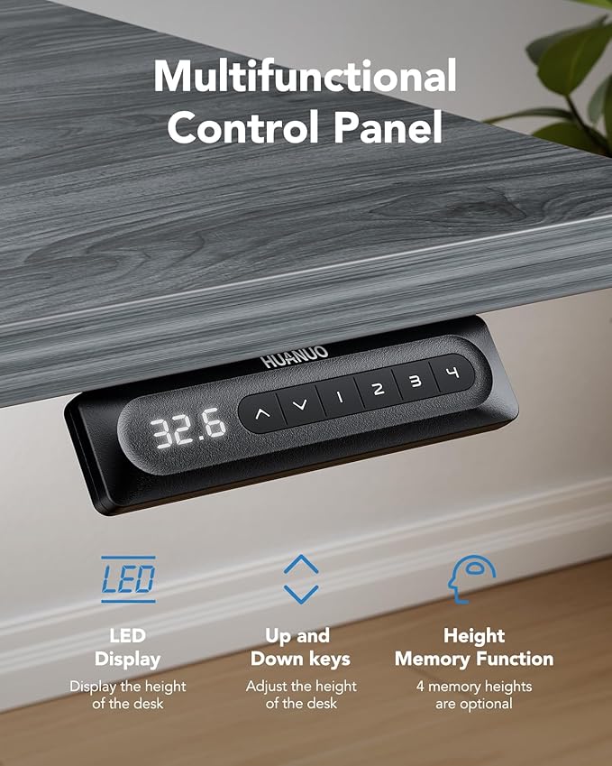 - 4 Custom Height Settings: Store custom sitting & standing heights for different users (or different use scenarios). Get the right height with a single button press.
