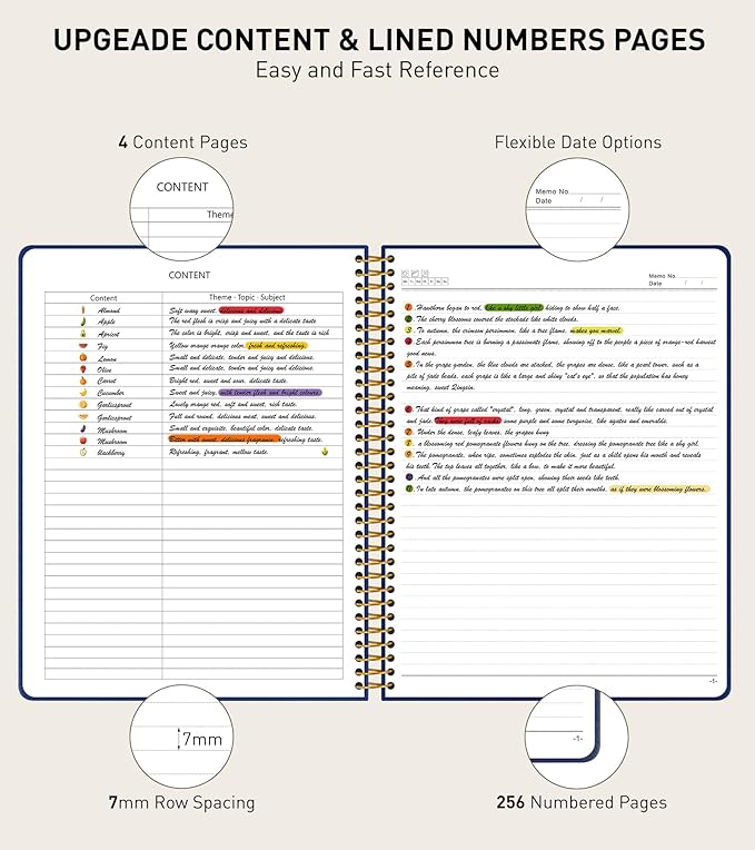 - 【Upgrade Spiral Journal Notebook】Our lined journal notebook is specifically designed to provide you with all the writing space you need. It includes 256 pages numbers and a 4-page blank table of contents. There is enough writing space to help you better categorize and record important matters. You can jot down important notes from various pages and note them in the front of the book for easy and fast reference. Each page has “Memo No” and “Date” header to help you keep track of the date.
